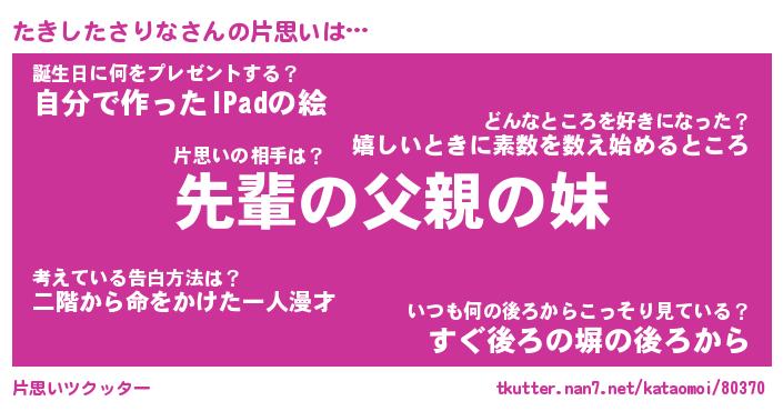 | 胡散臭い通販商品みたいなあだ名 | 『モテモテ間違いなし水晶球…その名も「たきしたさりな」』 |