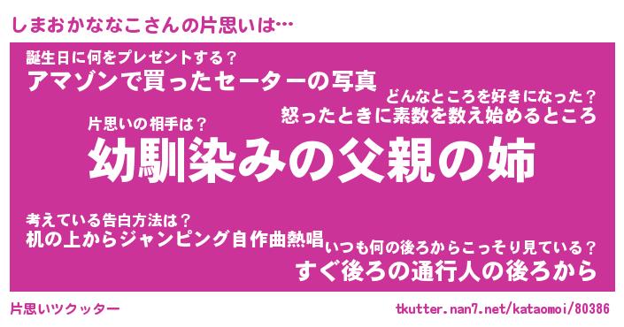 | 女子向けラノベタイトル風あだ名 | 『(仮)しまおかななこのやんごとなき事情』 |