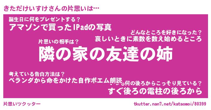 | 男性向けラノベタイトル風あだ名 | 『きただけいすけの憂鬱』 |