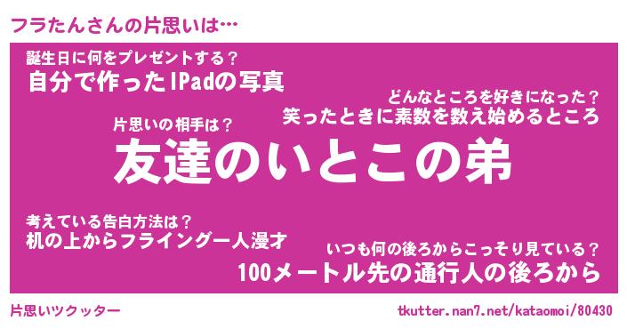 | 胡散臭い通販商品みたいなあだ名 | 『億万長者になれる水晶球…その名も「フラたん」』 |