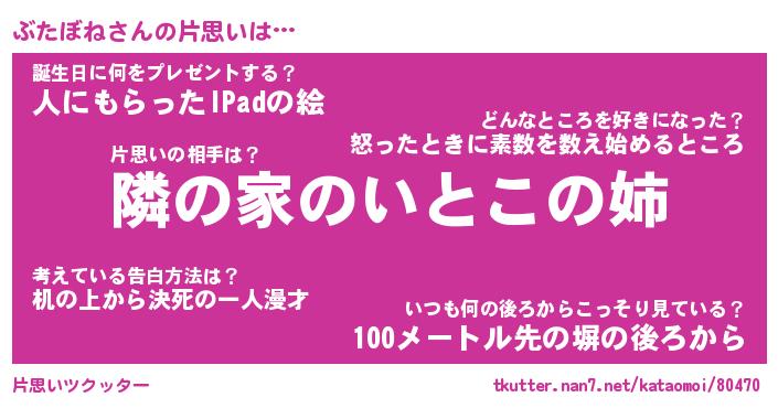 | ヘコむあだ名 | 『ぶたもー』『牛乳』『ぶたっぺ』 |