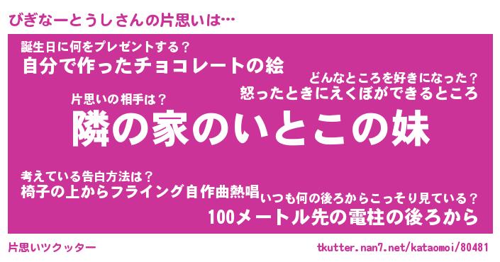 | ヘコむあだ名 | 『びぎもー』『つくし』『びぎお』 |