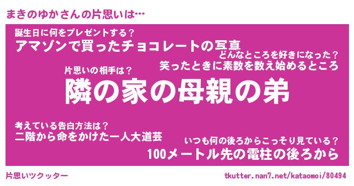 | 胡散臭い通販商品みたいなあだ名 | 『モテモテ間違いなしブレスレット…その名も「まきのゆか」』 |