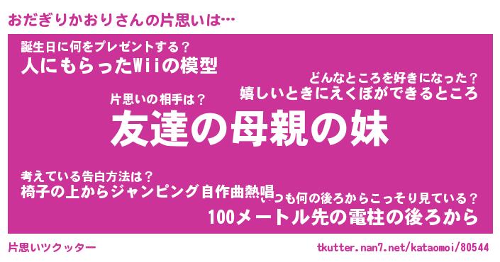 | 胡散臭い通販商品みたいなあだ名 | 『億万長者になれるブレスレット…その名も「おだぎりかおり」』 |