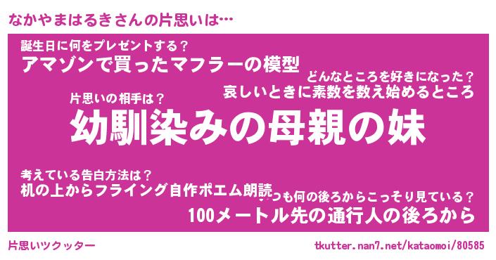 | 女子向けラノベタイトル風あだ名 | 『(仮)なかやまはるきのやんごとなき事情』 |