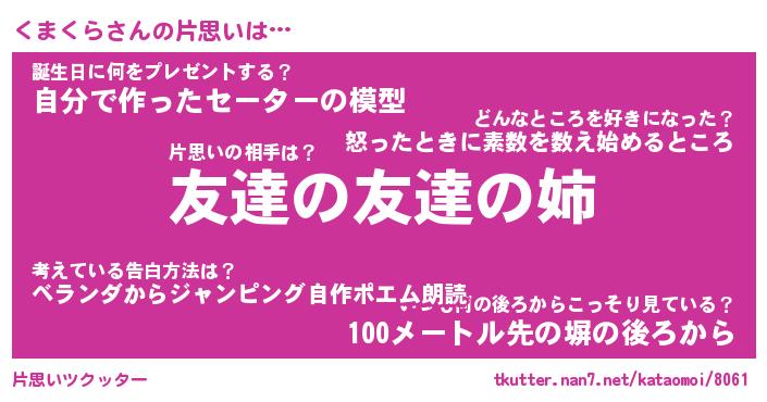 | ヘコむあだ名 | 『くまもー』『つくし』『くま太郎』 |