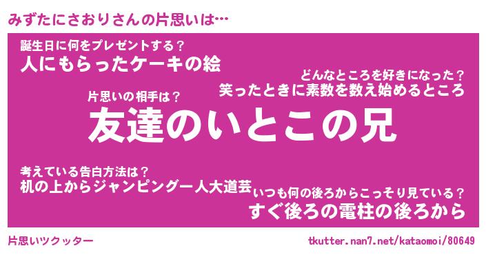 | 胡散臭い通販商品みたいなあだ名 | 『億万長者になれる水晶球…その名も「みずたにさおり」』 |