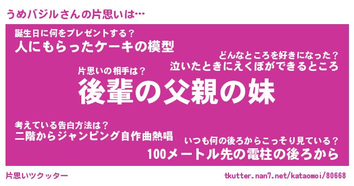| ヘコむあだ名 | 『うめにゅー』『酢こんぶ』『うめお』 |