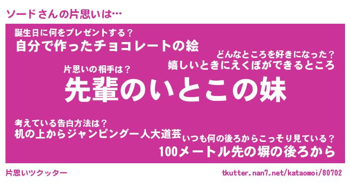 | ヘコむあだ名 | 『ソーにゅー』『つくし』『ソーを』 |