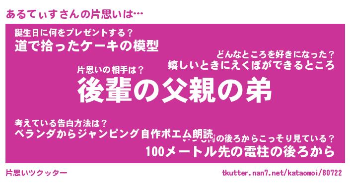 | 胡散臭い通販商品みたいなあだ名 | 『モテモテ間違いなしブレスレット…その名も「あるてぃす」』 |