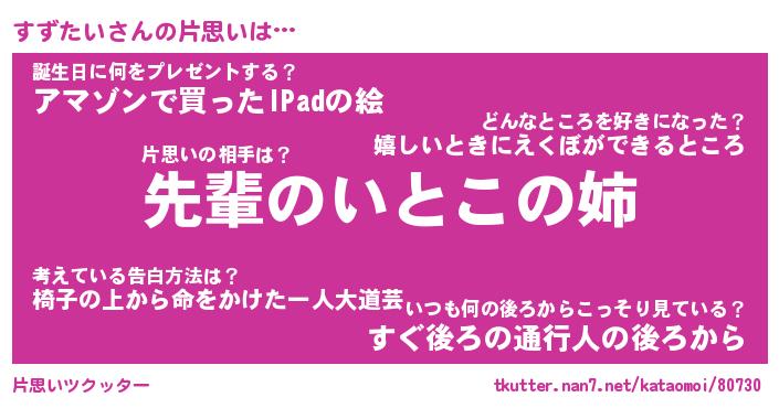 | 胡散臭い通販商品みたいなあだ名 | 『モテモテ間違いなし水晶球…その名も「すずたい」』 |
