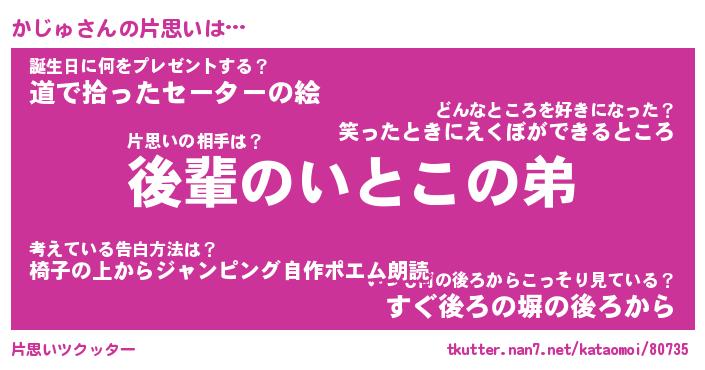 | 胡散臭い通販商品みたいなあだ名 | 『億万長者になれる水晶球…その名も「かじゅ」』 |