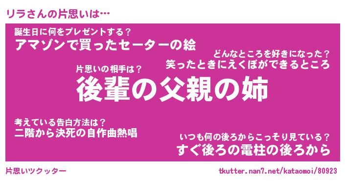 | ヘコむあだ名 | 『リラふぇ~』『なまこ酢』 |