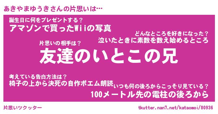 あきやまゆうきさんの片思いをツクッター!