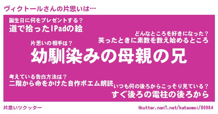 | 男性向けラノベタイトル風あだ名 | 『ヴィクトールの憂鬱』 |