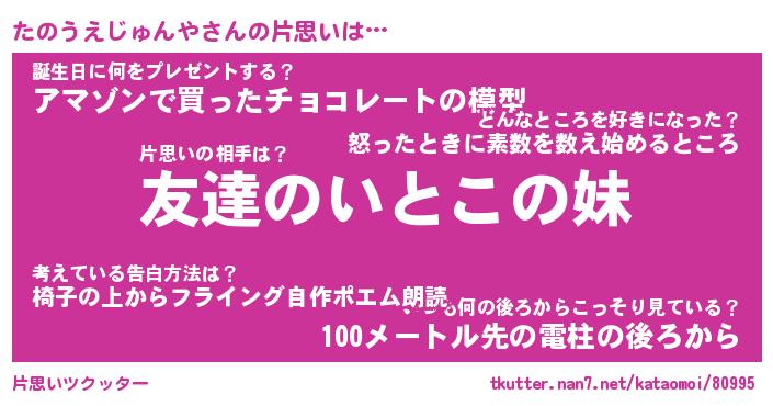 | 意味不明あだ名 | 『ペロリンたのうえじゅんや』 |