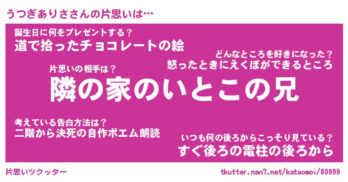 | 胡散臭い通販商品みたいなあだ名 | 『モテモテ間違いなし霊験あらたかなお札…その名も「うつぎありさ」』 |