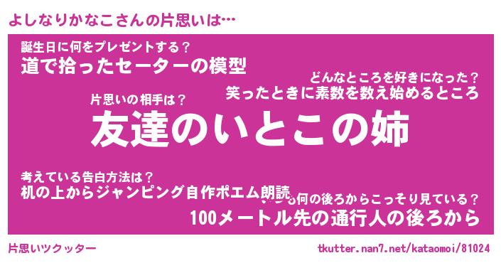 | ヘコむあだ名 | 『よしにゅー』『牛乳』『よしぷりん』 |