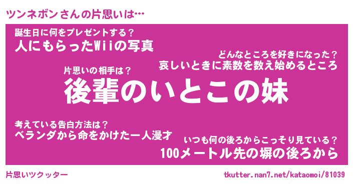 | ヘコむあだ名 | 『ツンもー』『なまこ酢』『ツン太郎』 |