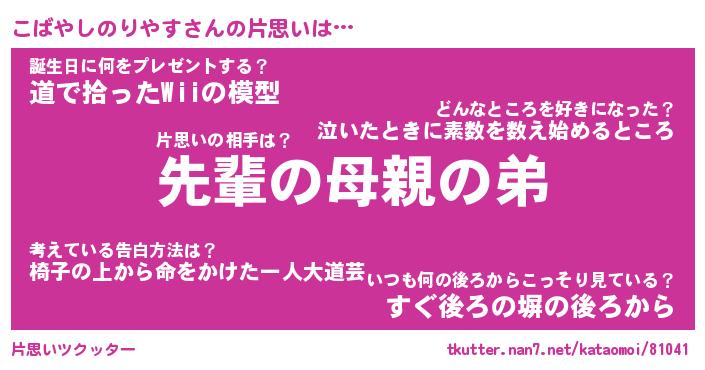 | ヘコむあだ名 | 『こばにー』『牛乳』『こば太郎』 |