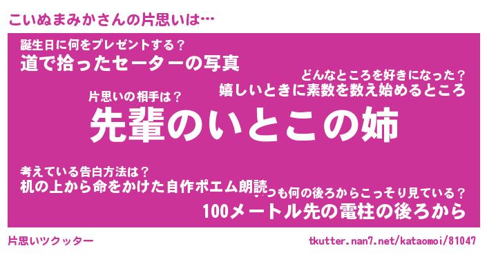 | 胡散臭い通販商品みたいなあだ名 | 『モテモテ間違いなし水晶球…その名も「こいぬまみか」』 |