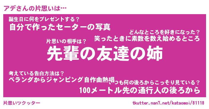 | 2回繰り返すあだ名 | 『アデアデ』『アアデデ』『きんきん』 |