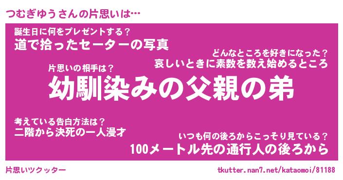 | 胡散臭い通販商品みたいなあだ名 | 『必ず成功するブレスレット…その名も「つむぎゆう」』 |