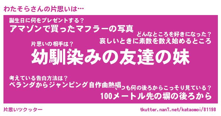 | 胡散臭い通販商品みたいなあだ名 | 『必ず成功する霊験あらたかなお札…その名も「わたそら」』 |