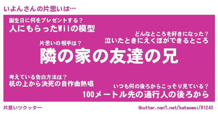 | ヘコむあだ名 | 『いよっふぃ~』『つくし』 |