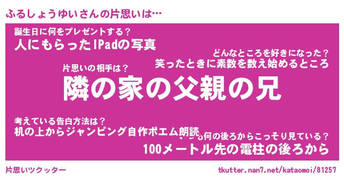 | 意味不明あだ名 | 『ペロリンふるしょうゆい』 |