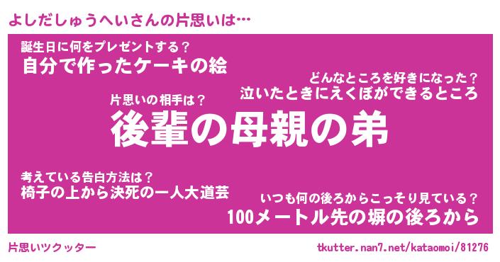 | 意味不明あだ名 | 『ペロリンよしだしゅうへい』 |