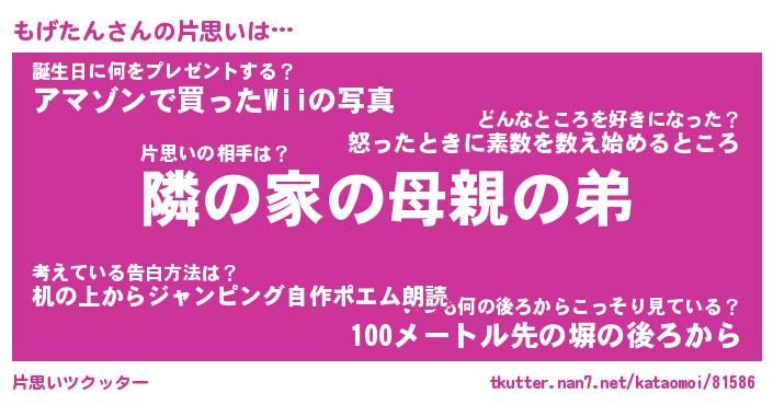 | 意味不明あだ名 | 『ペロリンもげたん』『永久保存もげたん』 |