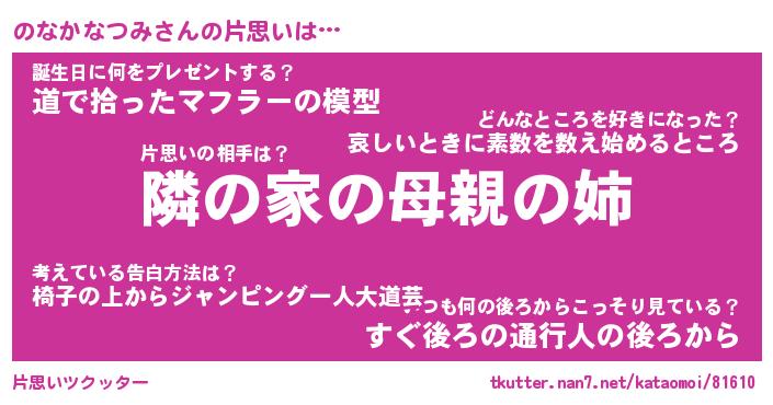 | 胡散臭い通販商品みたいなあだ名 | 『モテモテ間違いなしブレスレット…その名も「のなかなつみ」』 |