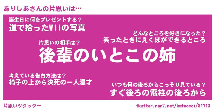 | ヘコむあだ名 | 『ありもー』『なまこ酢』『ありっ子』 |