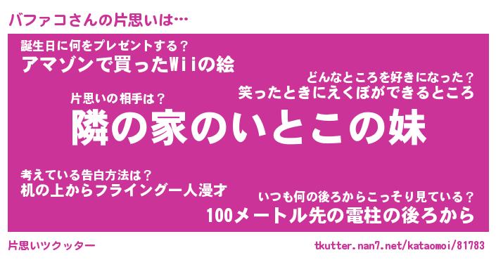 | ファンタジー風あだ名 | 『バフフェル』『エターナルバファコー』 |