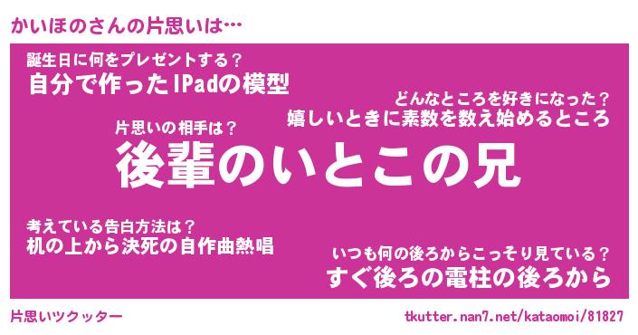 | ヘコむあだ名 | 『かいもー』『つくし』『かいっちょ』 |