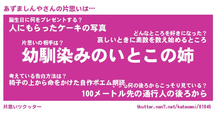 | 2回繰り返すあだ名 | 『あずあず』『ああずず』『にたにた』 |
