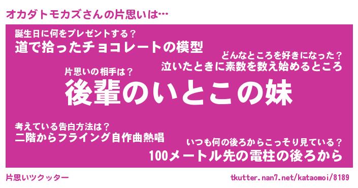 | 女子向けラノベタイトル風あだ名 | 『誰かこのオカダトモカズを説明してください! ~契約から始まるウェディング~』 |