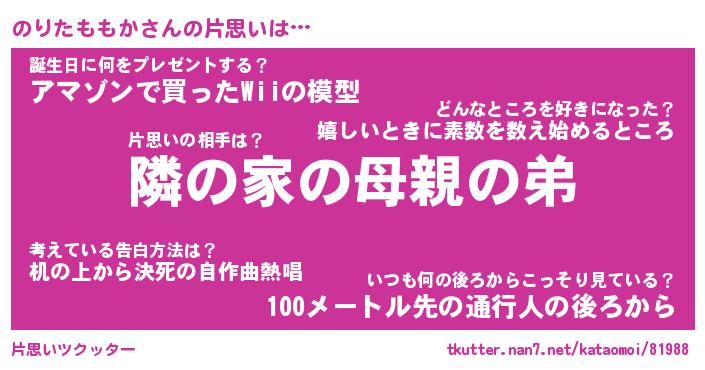 | ヘコむあだ名 | 『のりふぇ~』『なまこ酢』 |