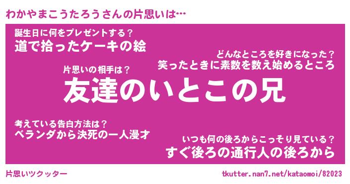 | 伝説のあだ名 | 『封印されしスナイパーわかやまこうたろう』 |