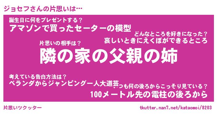 | 男性向けラノベタイトル風あだ名 | 『ジョセフの憂鬱』 |