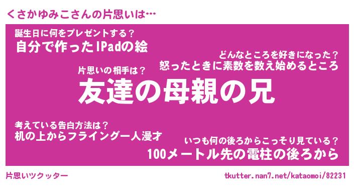 | 男性向けラノベタイトル風あだ名 | 『クサカユミコアートオンライン』 |