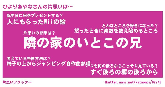 | 胡散臭い通販商品みたいなあだ名 | 『必ず成功する水晶球…その名も「ひよりあやな」』 |
