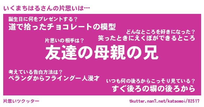 | 恥ずかしいあだ名 | 『プリティーいくまちはる』『いくっちょ』 |