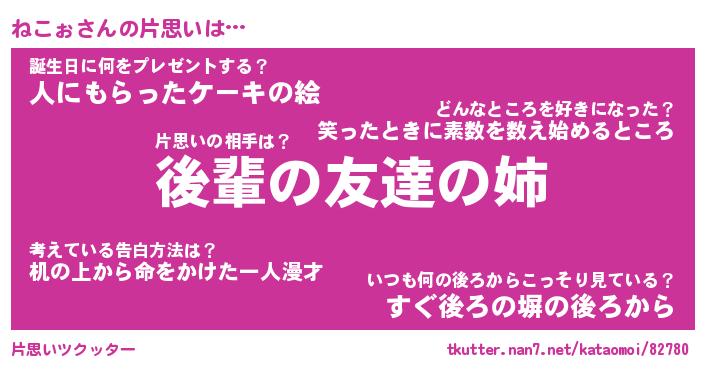 | ヘコむあだ名 | 『ねこっふぃ~』『つくし』 |
