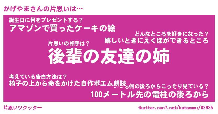 | ヘコむあだ名 | 『かげっふぃ~』『なまこ酢』 |