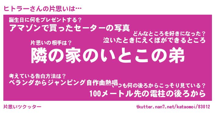 | 意味不明あだ名 | 『ペロリンヒトラー』『永久保存ヒトラー』 |