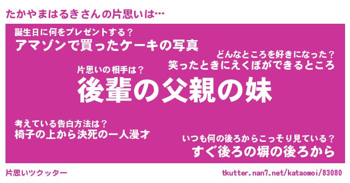 | 胡散臭い通販商品みたいなあだ名 | 『億万長者になれるブレスレット…その名も「たかやまはるき」』 |