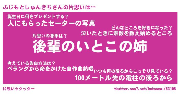 | ツイッター | ふじもとしゅんきちさんのツイッターID『dendenmushi_kun』 |