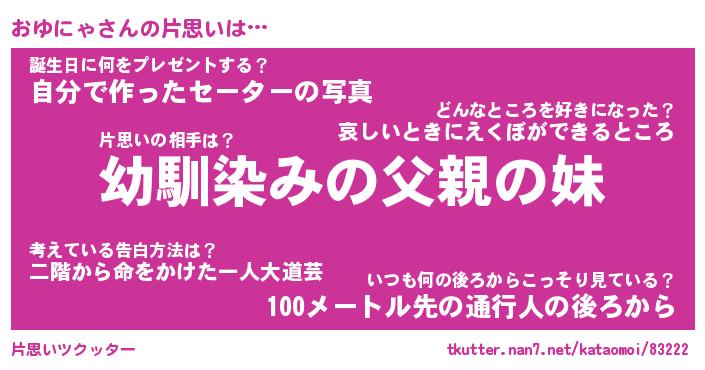 | 意味不明あだ名 | 『ペロリンおゆにゃ』『永久保存おゆにゃ』 |
